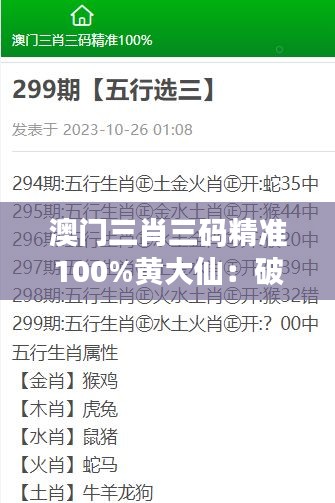 澳门三肖三码精准100%黄大仙:破解赌城奥秘的终极指南