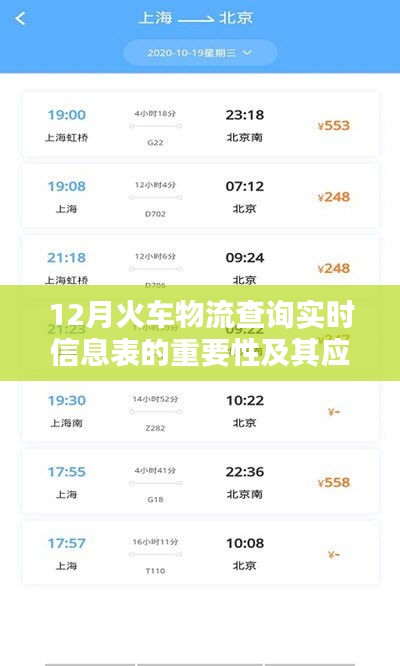 随着电子商务的飞速发展,物流业已成为支撑国家经济的重要支柱之一,特别是在临近年终的繁忙季节,如每年的十二月,物流信息的准确性和实时性对于企业和个人来说都是至关重要的,火车作为物流运输的主要方式之一,其运输量大、成本相对较低的特点使其在现代物流体系中占据重要地位,建立一个完善的“12月火车物流查询实时信息表”不仅对于物流行业内部人士具有实际意义,对于普通公众同样具有实用价值,本文将围绕这一话题展开讨论,阐述个人观点和理由。