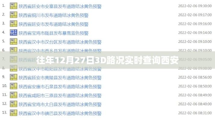 每年的12月27日,对于西安这座古老而又现代的城市来说,都是一年之中交通状况较为特殊的一天,随着春节的临近,人们的出行需求逐渐增加,道路交通状况也愈发复杂多变,为了确保广大市民及游客的出行安全,实时路况查询系统显得尤为重要,本文将通过3D路况实时查询系统,为大家呈现往年12月27日西安的路况。