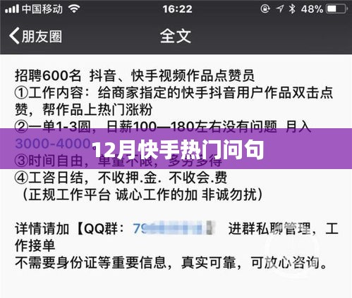 随着科技的飞速发展和社交媒体的普及,短视频平台如快手等已经成为人们生活中不可或缺的一部分,在快手上,用户们通过发布各类有趣、有特色的视频内容来互动交流,其中问句是常见的互动方式之一,本文将为您盘点12月在快手上的热门问句,带您一探究竟。
