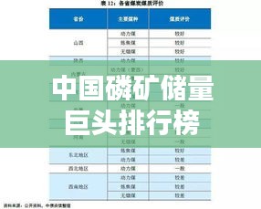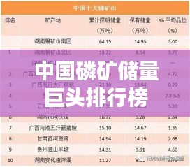 磷矿资源是我国重要的矿产资源之一,其在国民经济中占有举足轻重的地位,随着经济的发展和科技的进步,磷矿资源的开采和利用越来越受到关注,本文将介绍国内磷矿储量排名公司,让读者更好地了解这些公司的概况和业务范围。
