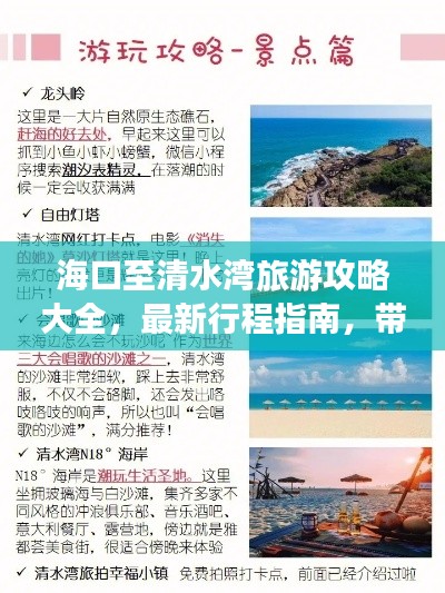 本文为您提供了从海口到清水湾的详细旅游攻略,包括交通方式、住宿选择、游玩攻略、美食推荐以及最新注意事项,希望这份攻略能帮助您轻松规划旅程,让您在海南岛的旅行更加愉快,无论您是想要海滩度假还是探索自然风光,清水湾都是一个值得一游的地方,祝您旅途愉快!