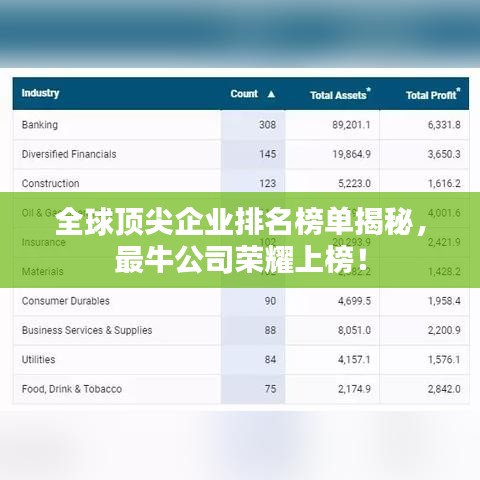 随着全球经济的蓬勃发展,各大公司的竞争也日益激烈,在这样的背景下,世界上最牛的公司排名榜成为了人们关注的焦点,这些公司不仅在各自的领域内取得了卓越的成就,而且在全球范围内也拥有广泛的影响力。