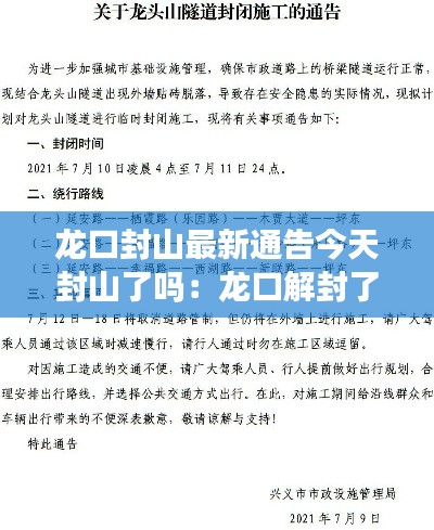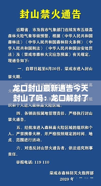 近期,关于龙口封山的消息引起了广泛关注。许多居民和游客都迫切想知道,今天龙口是否已经封山?本文将为大家带来最新的封山通告,帮助大家了解情况。