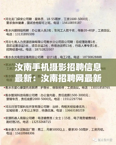 随着智能手机的普及和摄影技术的不断发展,手机摄影已经成为一种新兴的摄影方式。为了满足市场需求,提升汝南地区的手机摄影水平,我们特别推出最新的手机摄影招聘信息。以下是我们最新的招聘详情,欢迎有志之士加入我们的团队,共同打造汝南手机摄影的新篇章。