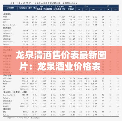 中国传统的酿酒技艺源远流长,其中龙泉清酒更是以其独特的酿造工艺和醇厚的口感深受消费者喜爱。随着市场的不断发展,龙泉清酒的售价也呈现出多样化的趋势。本文将为您带来龙泉清酒售价表的最新图片,让您一目了然地了解不同款式的龙泉清酒价格。