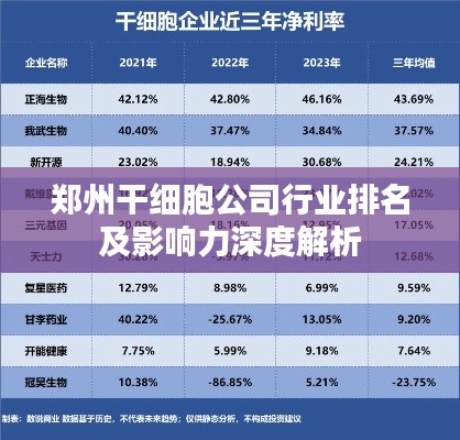 郑州干细胞公司行业排名及影响力深度解析