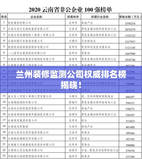 随着兰州市的快速发展,装修行业逐渐繁荣,众多装修公司涌现,在这个竞争激烈的市场环境下,兰州装修监测公司排名榜成为了众多业主关注的焦点,本文将为您详细介绍兰州装修监测公司的排名及相关信息。