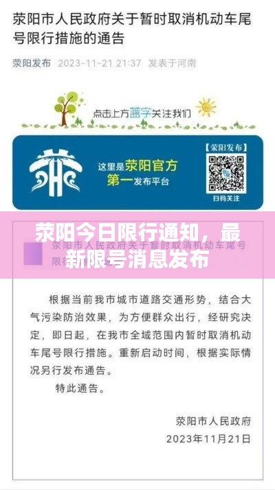 随着城市化的快速发展,交通拥堵问题愈发严重,为了缓解交通压力,许多城市采取了限行措施,荥阳市作为河南省的一个重要城市,近期也针对限行政策进行了调整,本文将为大家带来今日荥阳限号的最新消息。