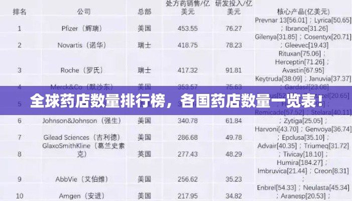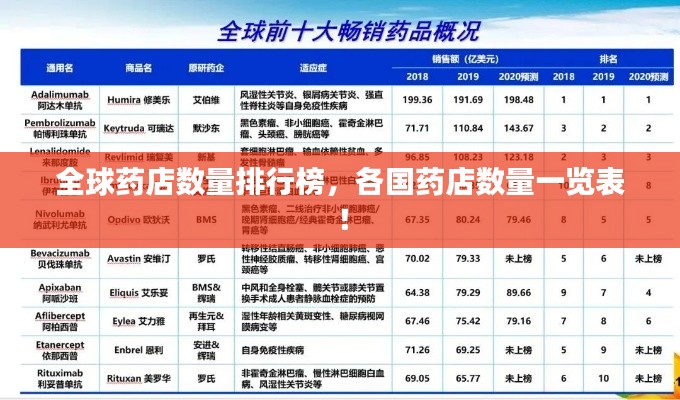 随着全球医药市场的不断发展,药店作为医疗服务体系的重要组成部分,其数量也在不断增加,本文将根据世界各国药店数量的统计数据,为读者呈现一份世界各国药店数量排名表,并分析背后的原因。