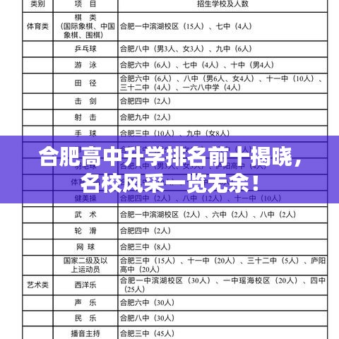 是合肥高中升学排名前十名的学校,这些学校在教育质量、师资力量、学科建设等方面都有着卓越的表现,它们不仅为学生提供了优质的教育资源,还注重学生的全面发展,培养学生的创新精神和实践能力,这些学校的优秀表现,为合肥市的教育事业增添了光彩,也为其他学校树立了榜样。