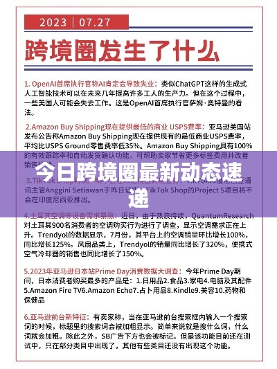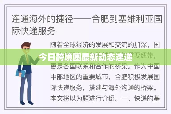随着全球化的不断发展,跨境贸易逐渐成为推动经济发展的重要力量,跨境圈内的最新消息对于企业和个人来说具有极大的参考价值,有助于把握市场趋势、规避风险以及发掘商机,本文将为大家带来今日跨境圈的最新消息查询。