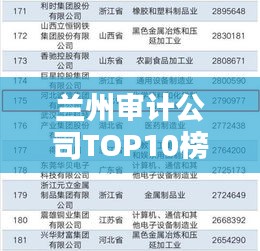 是兰州审计公司排名前十名的介绍,这些公司在审计服务领域表现出色,拥有优秀的团队和专业的服务,为兰州地区的客户提供高质量的审计服务,无论是财务报表审计、内部控制审计还是专项审计,这些公司都能为客户提供满意的服务,在选择审计公司时,客户可以根据自己的需求和实际情况选择合适的公司,希望这篇文章能对您选择兰州的审计公司有所帮助。