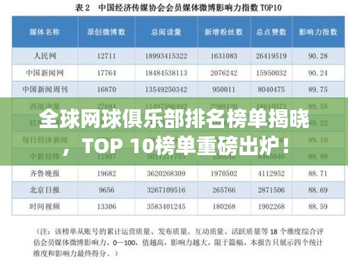 网球作为一项世界性的运动,吸引了众多俱乐部和选手的参与,本文将为您介绍全球网球俱乐部排名前十名,这些俱乐部不仅在网球领域有着卓越的成就,也代表着世界网球的最高水平。