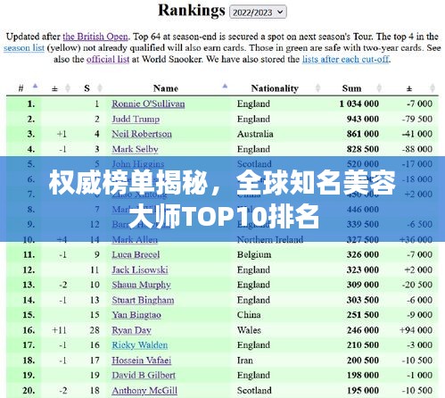 权威榜单揭秘,全球知名美容大师TOP10排名