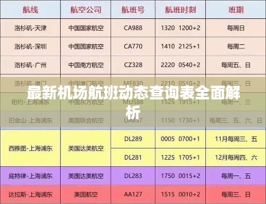随着航空行业的迅速发展,航班信息的实时更新变得尤为重要,本文将为您详细介绍最新的机场今日航班查询表,让您轻松掌握航班动态,安排出行计划。
