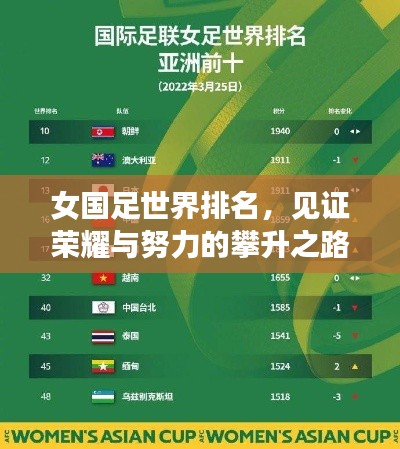 近年来,中国女国足在世界足坛的排名一直备受关注,这一排名不仅是球队实力的体现,更是背后无数球员辛勤付出、教练团队智慧指导以及国家足球发展的见证,本文将探讨女国足世界排名的背后故事,展现荣耀与努力的交织。