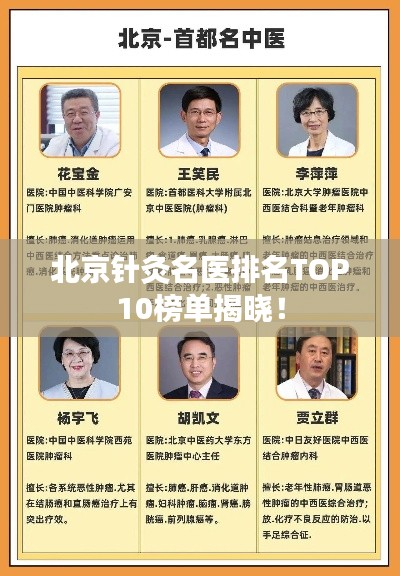 针灸,作为中国传统医学的宝贵遗产,近年来在全球范围内受到越来越多的关注和认可,在北京这座古老而又充满活力的城市,针灸医学得到了广泛传承与创新,本文将为您介绍北京针灸名医排名前十名,他们不仅在针灸领域有着深厚的造诣,还以其精湛的技术和卓越的治疗效果赢得了广大患者的信赖。