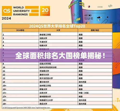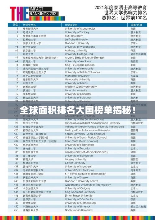 全球各地幅员辽阔,国家众多,各有其独特的地理特征和面积大小,本文将为您详细介绍全球面积排名靠前的几个国家,带您领略这些国家广袤的地理风貌。