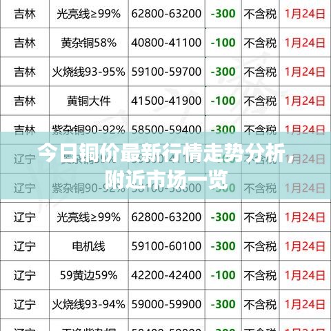 随着全球经济的复苏和基础设施建设的不断推进,铜作为一种重要的工业金属,其价格走势一直备受关注,本文将为您带来今日附近铜价的最新行情分析。