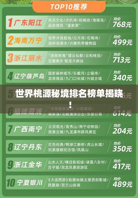 世界桃源秘境排名榜单揭晓!