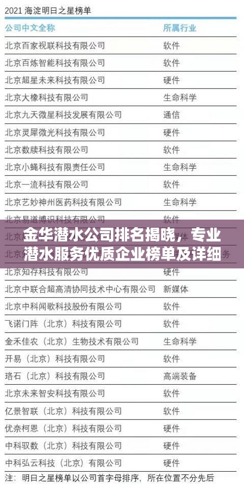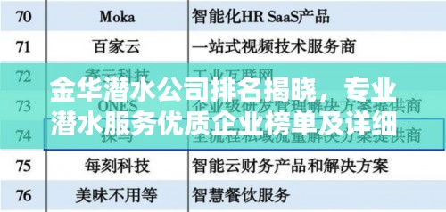 潜水行业随着经济的发展和人们对海洋资源的不断开发而逐渐壮大,金华作为浙江省的重要城市,其潜水公司在业内也具有一定的知名度和影响力,本文将介绍金华潜水公司的排名及相关信息。