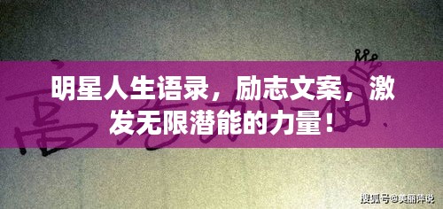 在光鲜亮丽的娱乐圈中,明星们不仅以其出色的才艺和颜值吸引了广大粉丝的关注,他们的人生哲学和励志语录也时常成为公众热议的焦点,他们的成功背后隐藏着无数的努力和汗水,他们的励志语录则成为了激励我们前行的动力。