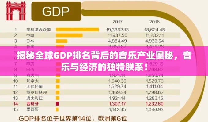 在全球化的今天,各国的GDP排名是衡量一个国家经济实力的重要标准之一,音乐产业作为全球经济的重要组成部分,也在一定程度上反映了各国的经济发展水平,本文将以“世界GDP排名音乐”为关键词,探讨全球GDP排名与音乐产业之间的关系。