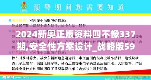随着技术的迅猛发展和互联网的普及,我们在享受新技术带来便捷的同时,也不得不面对随之而来的挑战。尤其是网络安全问题,更是与我们的日常生活息息相关。"2024新奥正版资料四不像337期",便是在这样的大背景下应运而生的项目。该项目旨在探索和研究如何通过安全性方案设计来保护用户的信息安全,这也是我们今天文章的核心内容。在这篇文章中,我们将深入分析"2024新奥正版资料四不像337期"的安全战略版59.156-7,探讨其对提升网络环境安全性所做出的贡献。