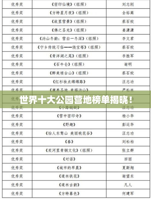 露营是一种亲近自然、享受户外生活的绝佳方式,在世界各地,有许多优秀的公园营地供人们选择,以下是世界公园营地排名前十名,这些营地以其独特的风景、设施和服务赢得了露营者的喜爱。