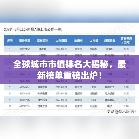 全球城市市值排名大揭秘,最新榜单重磅出炉!