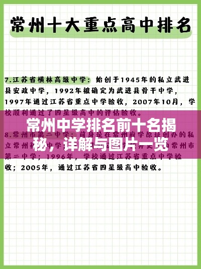 在常州市,拥有众多优秀的中学,其中排名前十的学校更是备受关注,这些学校以其卓越的教学质量、丰富的课程设置和良好的校园环境,吸引了众多学子前来求学,本文将为您详细介绍常州中学排名前十的学校,并附上相关图片,让您更直观地了解这些学校的风采。