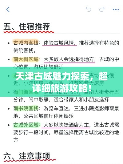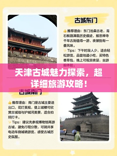 天津,这座拥有深厚历史文化底蕴的城市,近年来已成为旅游者的热门目的地,我们将一起探索天津的古城区域,带您领略这座城市的独特魅力,本文将从多个方面为您呈现一份详尽的天津古城旅游攻略。