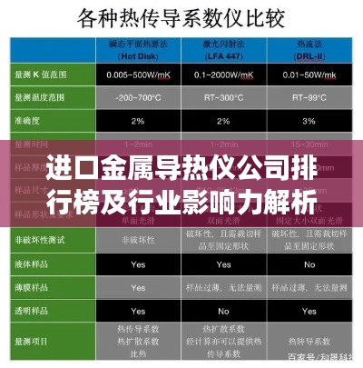 进口金属导热仪公司在全球市场中占据重要地位,其产品在电子、冶金、化工等行业的应用越来越广泛,这些公司通过技术创新、产品质量、市场占有率和客户服务等方面的优势,不断满足用户需求,推动行业发展。