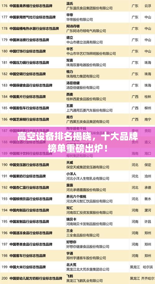 随着科技的不断发展,高空设备在各种领域的应用越来越广泛,本文将为您介绍高空设备排名前十名,这些设备在性能、安全性、稳定性等方面均表现出色,是高空作业领域的佼佼者。