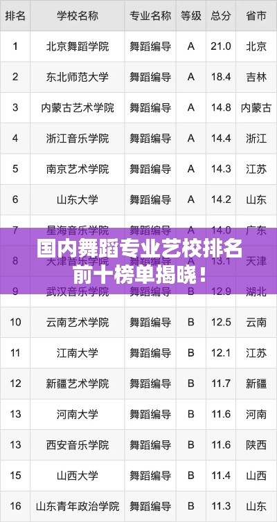 舞蹈艺术在中国文化领域占有重要地位,随着社会对艺术教育的重视不断提高,国内艺校舞蹈专业的发展也日新月异,本文将介绍国内艺校舞蹈排名前十名,这些学校在教学质量、师资力量、舞蹈设施等方面均表现出色。