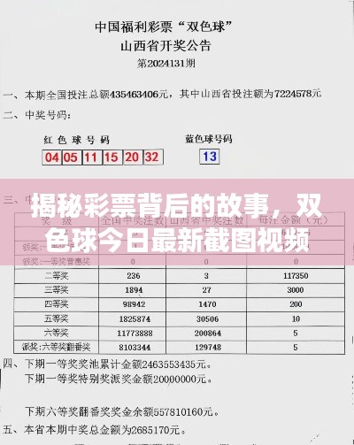 在当今信息化社会,彩票已成为人们生活中不可或缺的一部分,双色球作为中国最受欢迎的彩票游戏之一,其开奖过程和结果备受关注,本文将围绕“双色球今日截图视频最新”这一主题,为您揭示彩票背后的故事,带您了解双色球的最新动态。