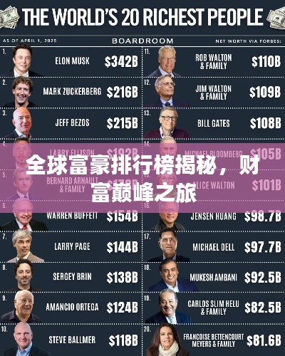 随着全球经济的高速发展,世界富翁的排名也在不断变化,这些排名背后反映了全球经济格局的变迁,以及企业家、投资者和创新者的智慧与努力,本文将带你了解世界富翁排名的背后故事,揭示财富巅峰的奥秘。