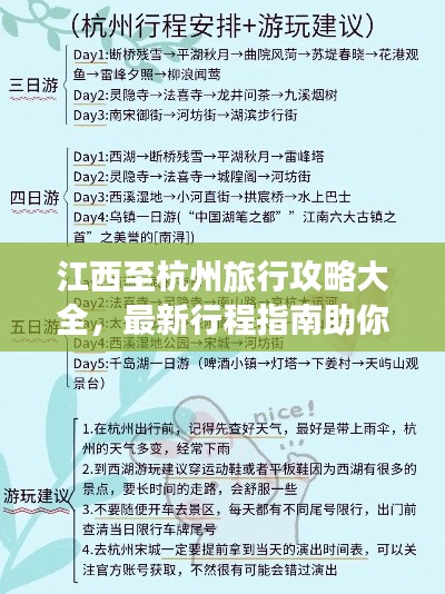 江西与浙江杭州之间的旅行一直备受瞩目,本文将为您提供最新的江西至杭州旅行攻略,帮助您轻松规划行程,享受美好的旅程,本文将涵盖交通、住宿、景点推荐、美食等方面,为您的旅行提供全方位的指南。