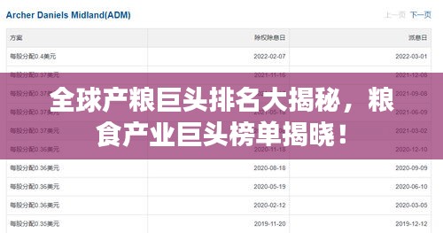 全球产粮巨头排名大揭秘,粮食产业巨头榜单揭晓!