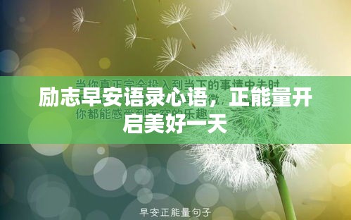 新的一天,新的开始,让我们用正能量的心语,激励自己不断前行,无论面临何种挑战,都要保持一颗勇敢的心,坚定信念,勇往直前,让我们在励志的道路上,不断超越自我,成就更好的自己,早安,愿你在新的一天里充满活力和正能量,迎接每一个新的挑战!
