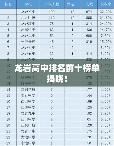 龙岩市是福建省的一个重要城市,教育事业蓬勃发展,高中阶段教育水平一直处于福建省前列,随着教育质量的不断提升,龙岩市的高中排名也逐渐受到广泛关注,本文将介绍龙岩市高中前十名的排名情况,以供参考。