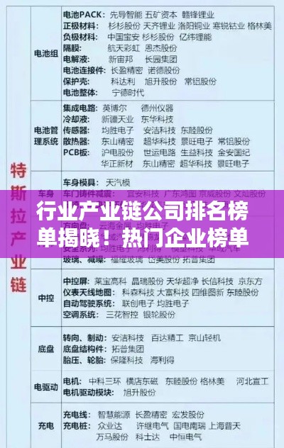 行业产业链公司排名榜单揭晓!热门企业榜单全解析