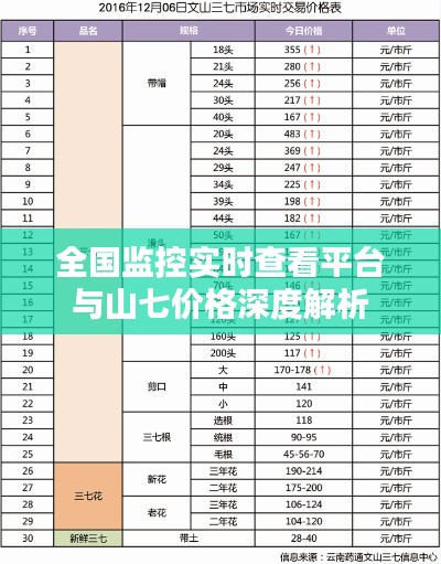 全国监控实时查看网站在维护社会治安方面发挥着重要作用,而山七作为中药材市场的一员,其价格受多种因素影响,通过了解这些因素,我们可以更好地了解山七的市场状况,为生活健康提供保障,我们也应关注社会治安状况,因为这可能间接影响山七等中药材的市场需求与价格。