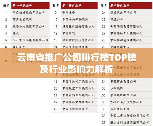 随着数字化时代的来临,推广公司的角色愈发重要,在云南省,众多优秀的推广公司凭借其卓越的服务和丰富的经验,赢得了业界和客户的广泛赞誉,本文将探讨云南省推广公司的排名及其影响力,以助您更好地了解这一领域的现状。