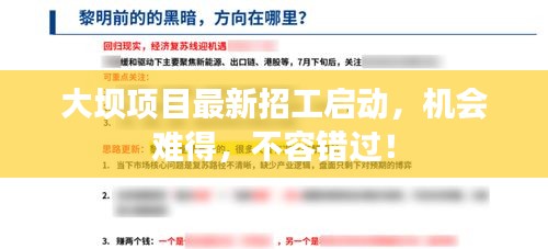 随着季节的变换,各地的建设工程也在不断地推进,关于大坝项目的最新招工信息引起了广泛关注,本文将为您详细介绍大坝项目今日是否招工以及相关的最新信息。