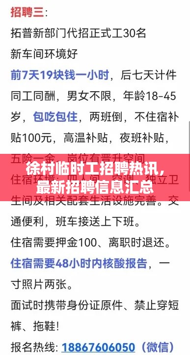 想要获取徐村最新的临时工招聘信息,可以通过以下途径: