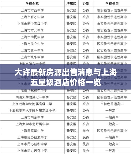 随着城市化进程的加速,房地产市场日新月异,上海这座繁华的国际大都市更是房产交易活跃的热点区域,本文将为您带来关于大许房子出售的最新消息以及上海五星级酒店的价格概览,以便您了解当前市场动态。