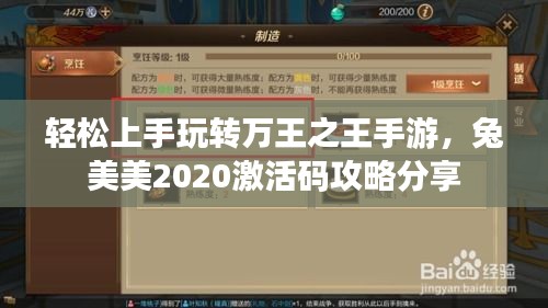 嘿,小伙伴们,你们好!今天我们来聊聊一款火热的手游——万王之王,还有如何获取神秘的兔美美2020激活码,让我带你走进这个充满魔法与冒险的游戏世界,一起探索其中的奥秘吧!