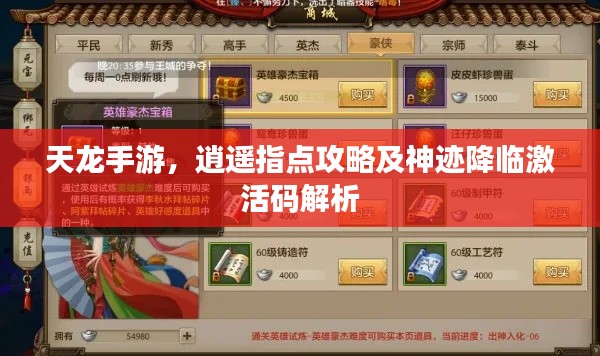 天龙手游,逍遥指点攻略及神迹降临激活码解析